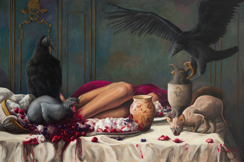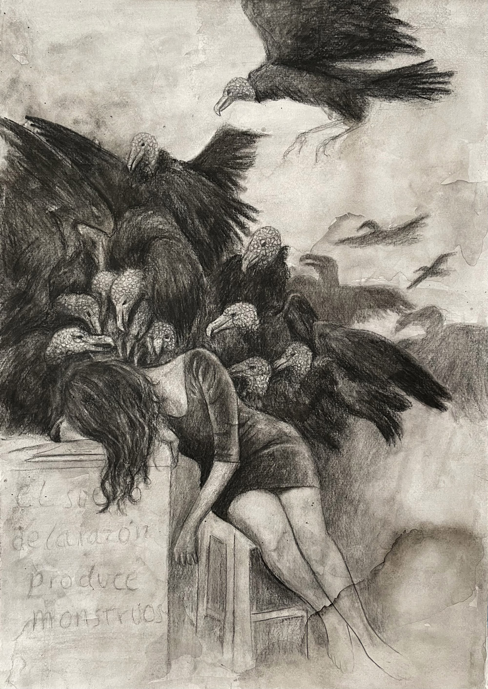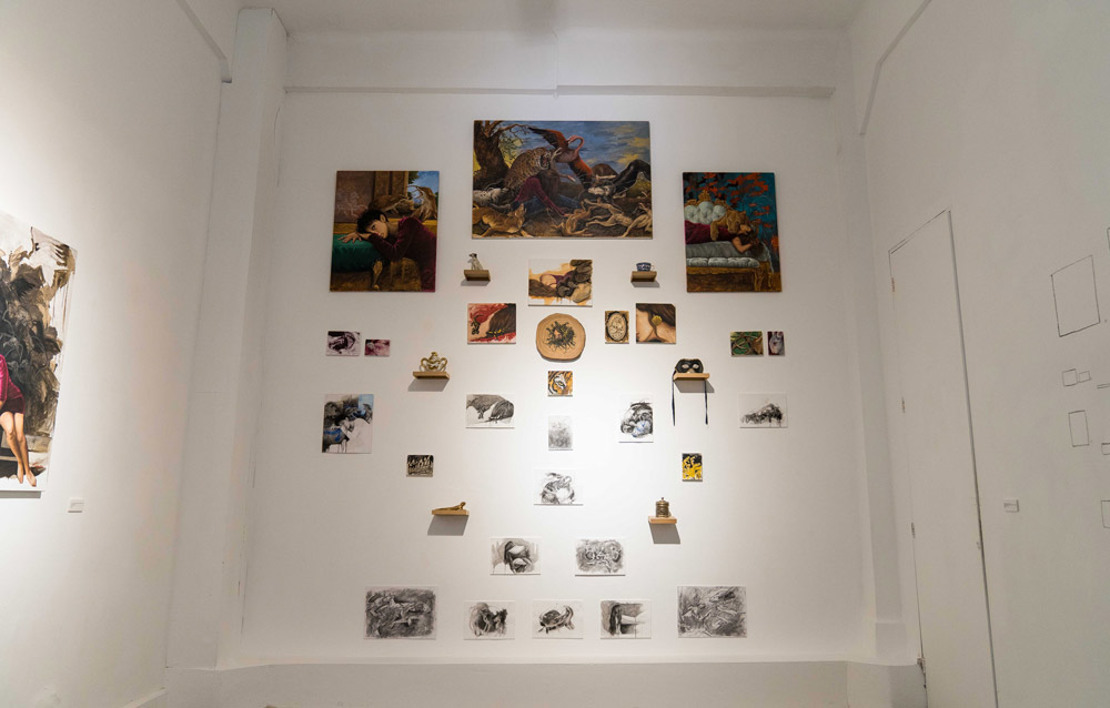 La muestra posee un contundente expresionismo que refuerza la carga de violencia, además de un simbolismo y erotismo que evoca a Durero, Bosch, el Barroco y Goya.